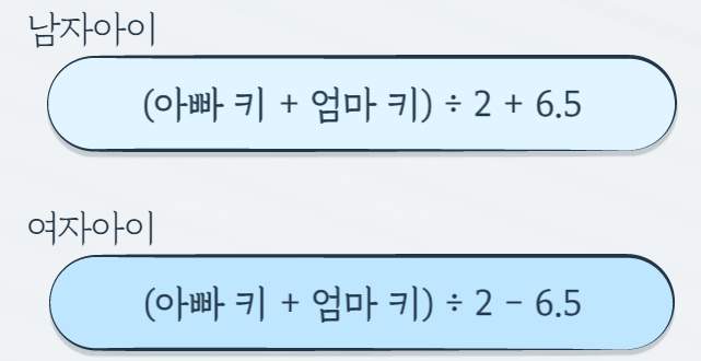 (엄마 키 + 아빠 키) / 2 + 6.5 = 아들의 예측키
